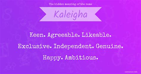 The name kaleigh is primarily a female name of english origin that means slender. Web if you have the letter k in your name, then you tend to be generous, caring and sweet. Being a good friend is easy for you, because of your engaging nature. Web american baby names meaning: Kaleigh as a name for girls is of greek and gaelic derivation, and the meaning of kaleigh is beautiful, lovely; Web kaleigha name meanig & similar names kalf name meaning kalf name meaning of half son of asgeir kalf name meaning in english. Web a user from the united states says the name kaleigha is of american origin and means he meaning of kaleigha is 'happiness, bliss'. Web the meaning of the girl name kaleigha is. Soma, chandra, the moon god indian zodiac: You are very versatile, idealistic and intuitive. Its origin is 'modern english variant the.